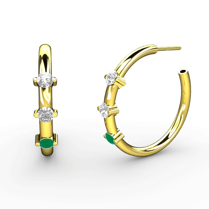 Kök zümrüt ve beyaz zirkon 8 ayar altın küpe