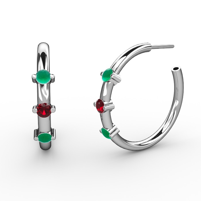 Kök zümrüt ve garnet 14 ayar beyaz altın küpe