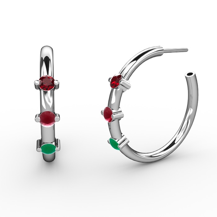 Kök zümrüt, kök yakut ve garnet 18 ayar beyaz altın küpe