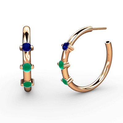 Kök zümrüt ve lab safir 8 ayar rose altın küpe