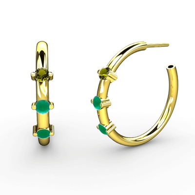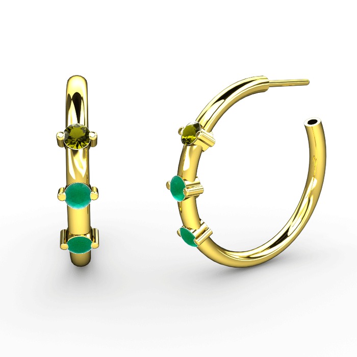 Kök zümrüt ve peridot 14 ayar altın küpe
