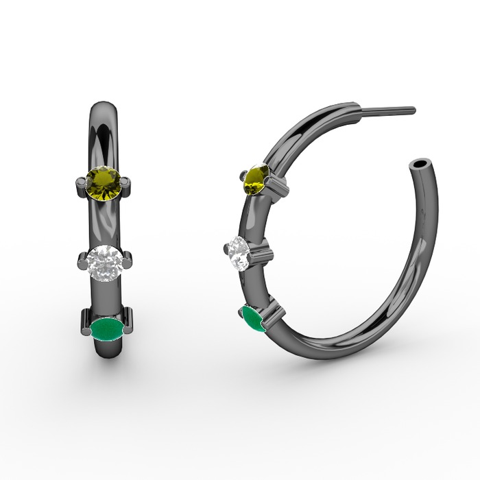 Kök zümrüt, pırlanta ve peridot 925 ayar siyah rodyum kaplama gümüş küpe (0.22 karat)