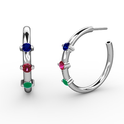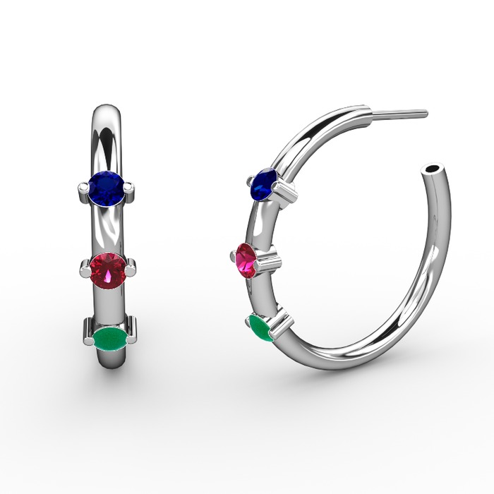 Kök zümrüt, rodolit garnet ve lab safir 8 ayar beyaz altın küpe