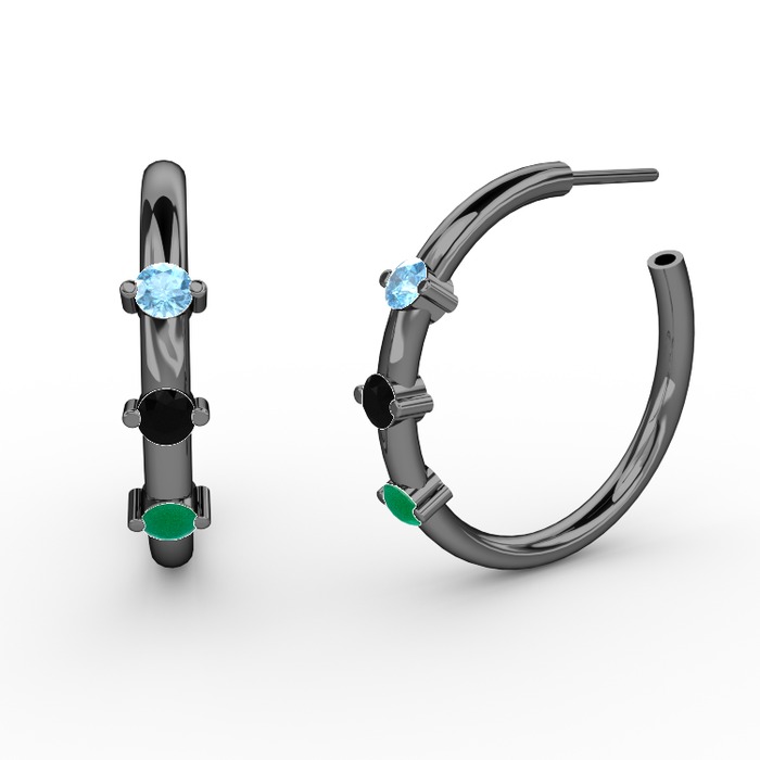 Kök zümrüt, siyah zirkon ve akuamarin 925 ayar siyah rodyum kaplama gümüş küpe