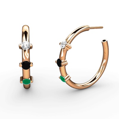 Kök zümrüt, siyah zirkon ve beyaz zirkon 925 ayar rose altın kaplama gümüş küpe