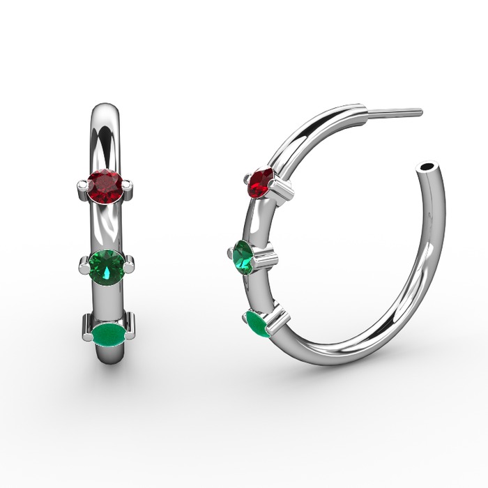 Kök zümrüt, yeşil kuvars ve garnet 925 ayar gümüş küpe