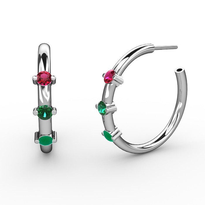 Kök zümrüt, yeşil kuvars ve rodolit garnet 14 ayar beyaz altın küpe
