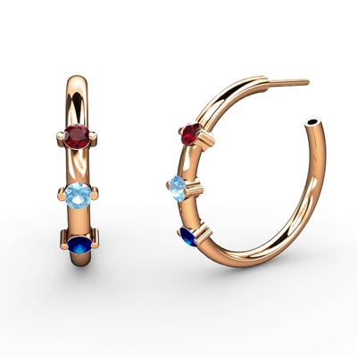 Lab safir, akuamarin ve garnet 925 ayar rose altın kaplama gümüş küpe