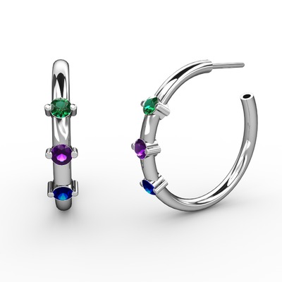 Lab safir, ametist ve yeşil kuvars 18 ayar beyaz altın küpe