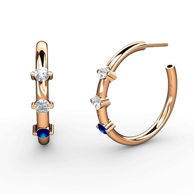 Lab safir ve beyaz zirkon 14 ayar rose altın küpe