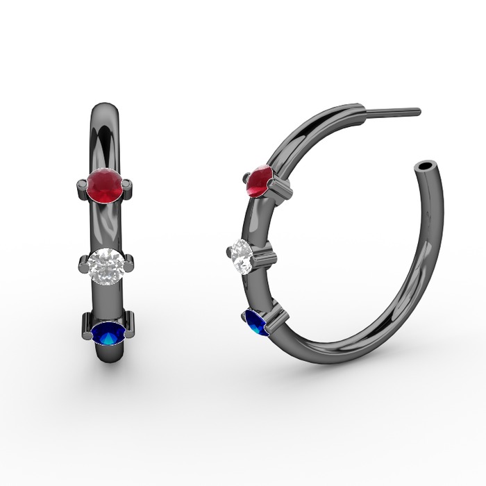 Lab safir, beyaz zirkon ve kök yakut 925 ayar siyah rodyum kaplama gümüş küpe