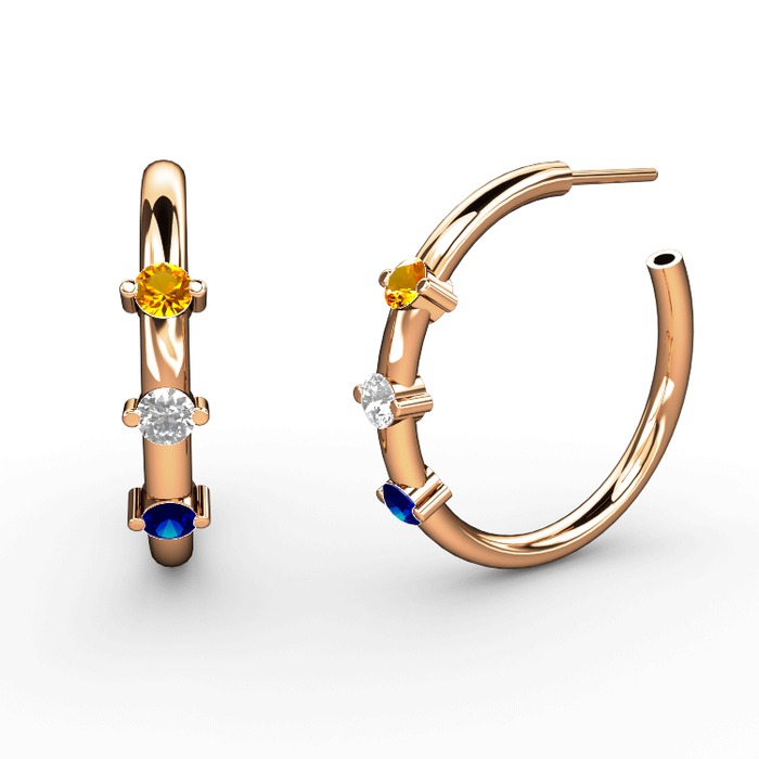 Lab safir, beyaz zirkon ve sitrin 8 ayar rose altın küpe