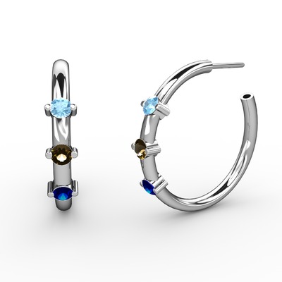 Lab safir, dumanlı kuvars ve akuamarin 14 ayar beyaz altın küpe