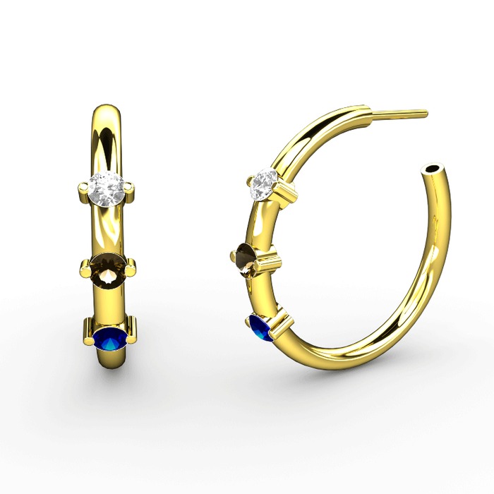 Lab safir, dumanlı kuvars ve pırlanta 8 ayar altın küpe (0.22 karat)
