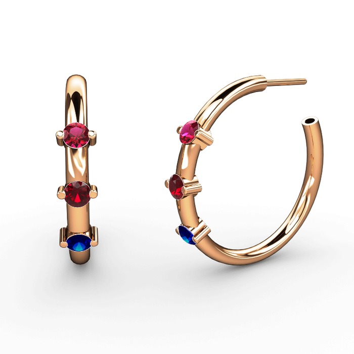 Lab safir, garnet ve rodolit garnet 925 ayar rose altın kaplama gümüş küpe