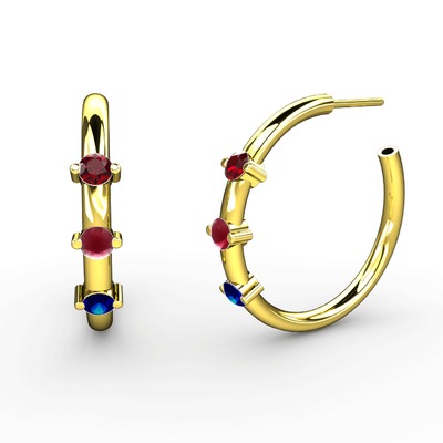 Lab safir, kök yakut ve garnet 8 ayar altın küpe