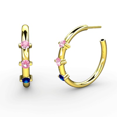 Lab safir ve pembe kuvars 18 ayar altın küpe