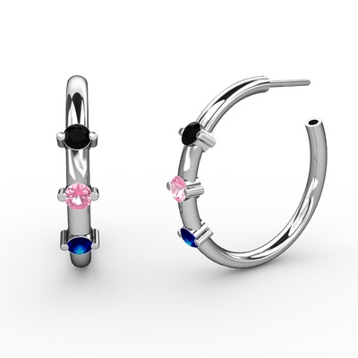 Lab safir, pembe kuvars ve siyah zirkon 18 ayar beyaz altın küpe