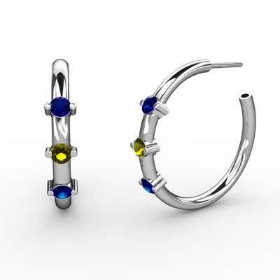 Lab safir ve peridot 8 ayar beyaz altın küpe