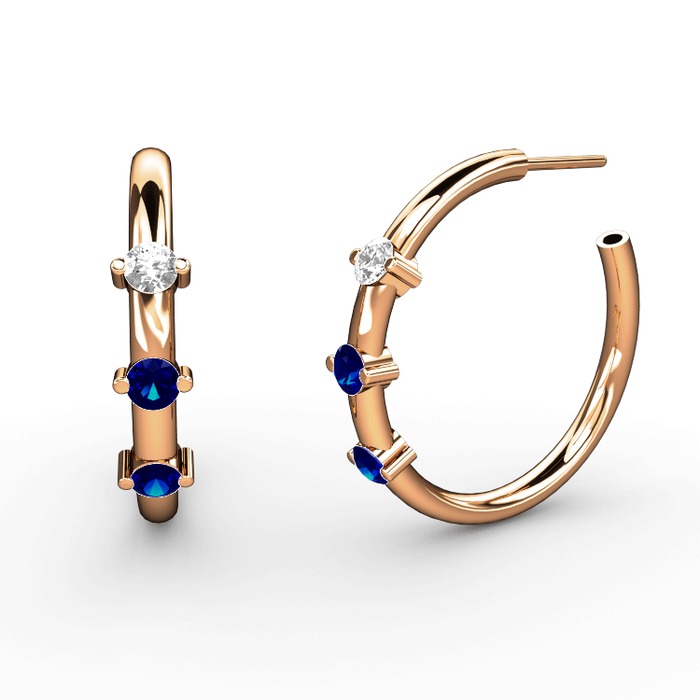 Lab safir ve pırlanta 18 ayar rose altın küpe (0.22 karat)