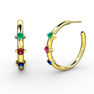 Lab safir, rodolit garnet ve kök zümrüt 18 ayar altın küpe