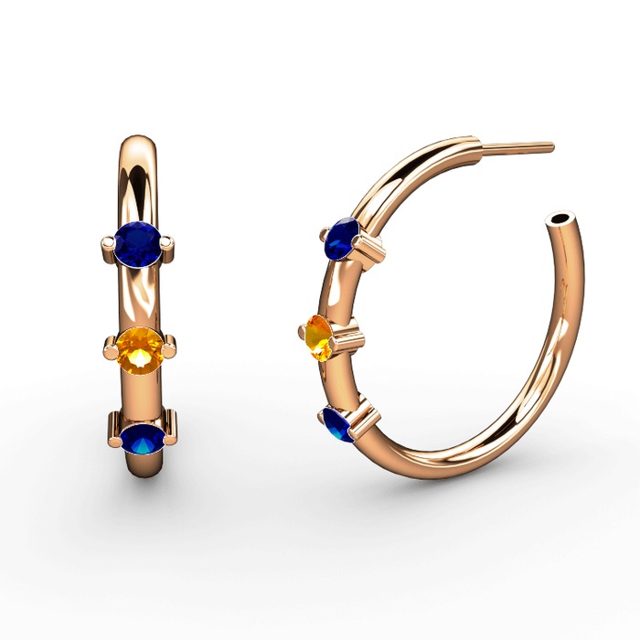 Lab safir ve sitrin 18 ayar rose altın küpe