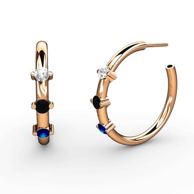 Lab safir, siyah zirkon ve swarovski 925 ayar rose altın kaplama gümüş küpe