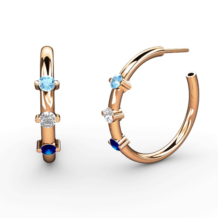 Lab safir, swarovski ve akuamarin 8 ayar rose altın küpe