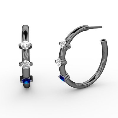Lab safir, swarovski ve beyaz zirkon 925 ayar siyah rodyum kaplama gümüş küpe