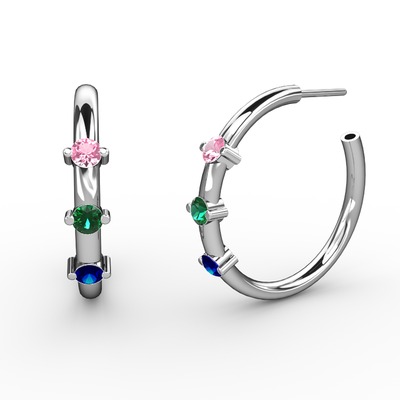Lab safir, yeşil kuvars ve pembe kuvars 8 ayar beyaz altın küpe