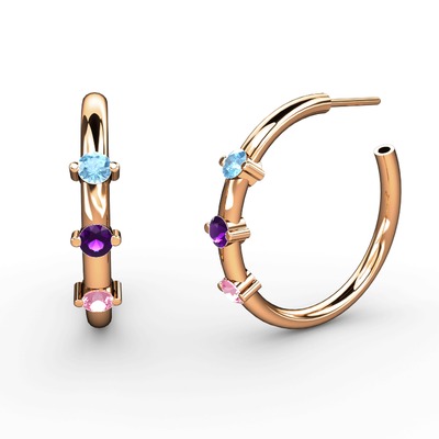 Pembe kuvars, ametist ve akuamarin 925 ayar rose altın kaplama gümüş küpe