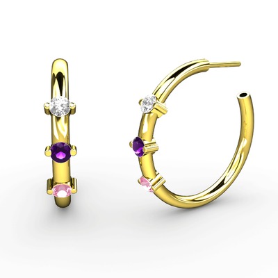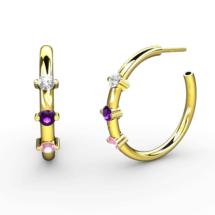 Pembe kuvars, ametist ve swarovski 925 ayar altın kaplama gümüş küpe
