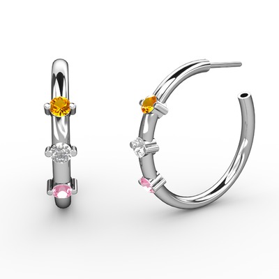 Pembe kuvars, beyaz zirkon ve sitrin 14 ayar beyaz altın küpe