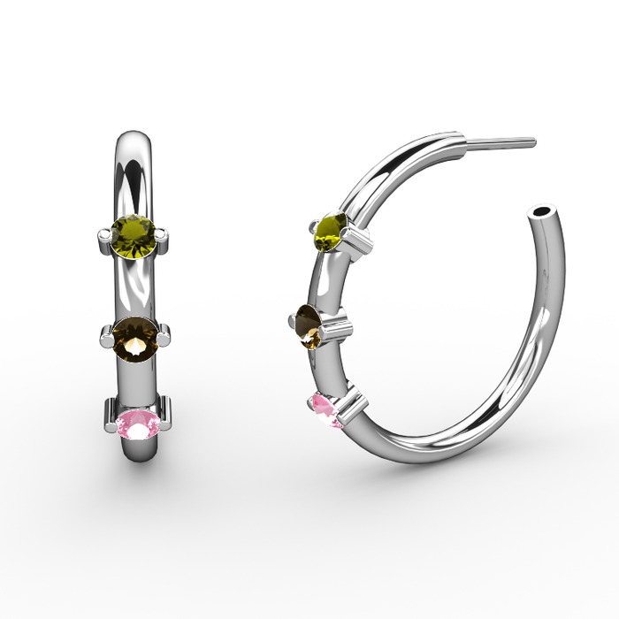 Pembe kuvars, dumanlı kuvars ve peridot 18 ayar beyaz altın küpe