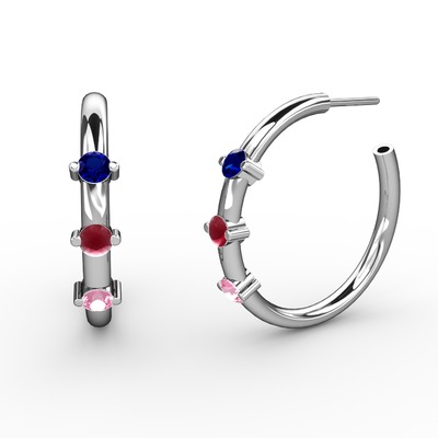 Pembe kuvars, kök yakut ve lab safir 8 ayar beyaz altın küpe