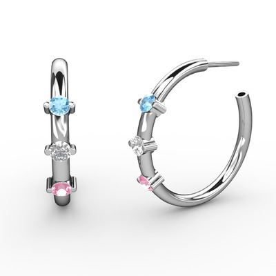 Pembe kuvars, pırlanta ve akuamarin 925 ayar gümüş küpe (0.22 karat)