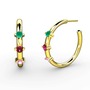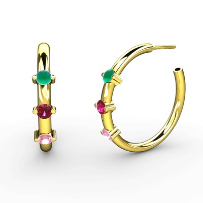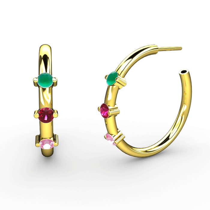 Pembe kuvars, rodolit garnet ve kök zümrüt 18 ayar altın küpe