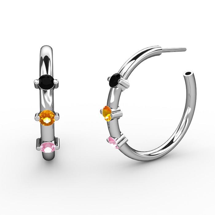 Pembe kuvars, sitrin ve siyah zirkon 8 ayar beyaz altın küpe