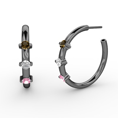Pembe kuvars, swarovski ve dumanlı kuvars 925 ayar siyah rodyum kaplama gümüş küpe