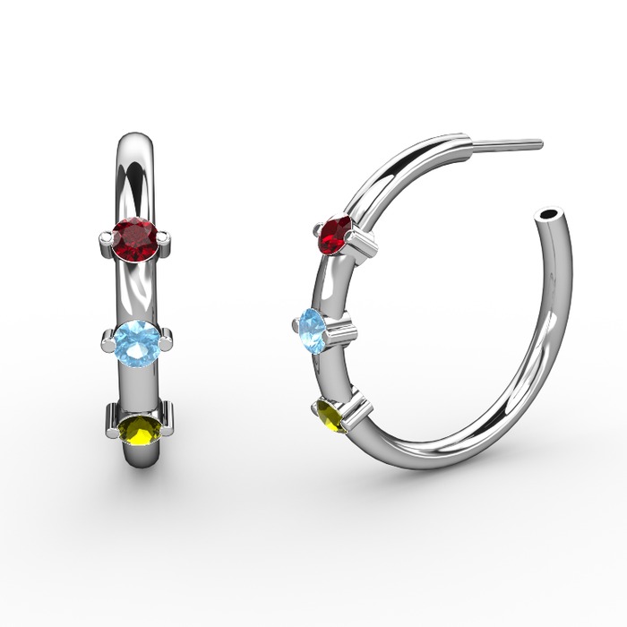 Peridot, akuamarin ve garnet 8 ayar beyaz altın küpe