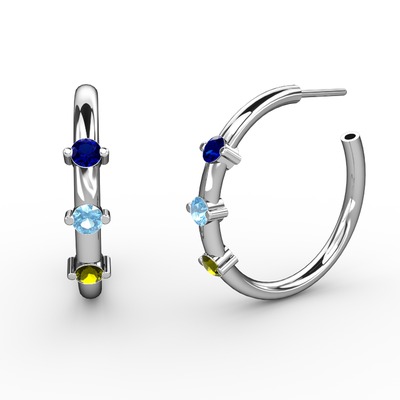 Peridot, akuamarin ve lab safir 18 ayar beyaz altın küpe