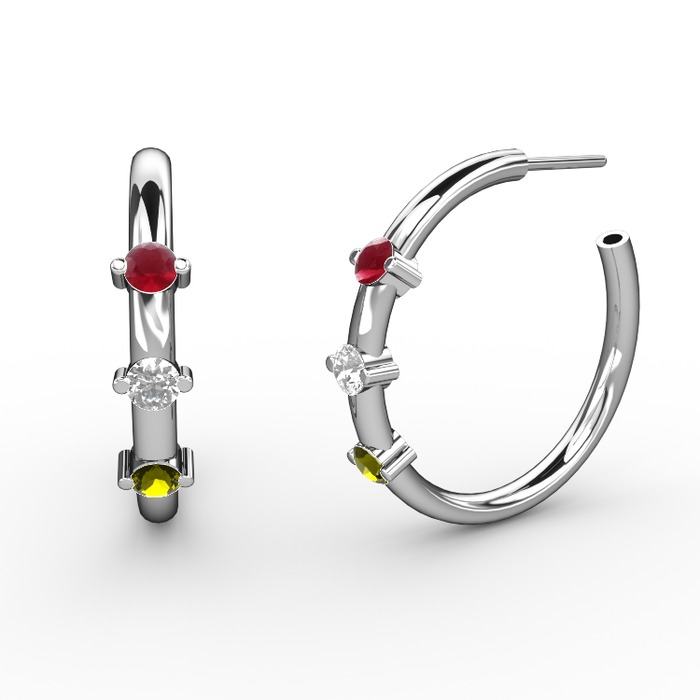 Peridot, beyaz zirkon ve kök yakut 925 ayar gümüş küpe