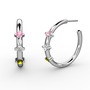 Peridot, beyaz zirkon ve pembe kuvars 14 ayar beyaz altın küpe