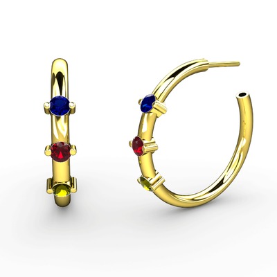 Peridot, garnet ve lab safir 8 ayar altın küpe
