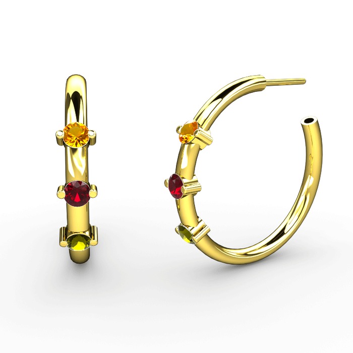 Peridot, garnet ve sitrin 8 ayar altın küpe