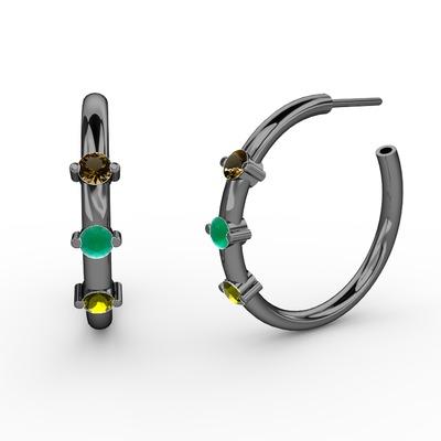 Peridot, kök zümrüt ve dumanlı kuvars 925 ayar siyah rodyum kaplama gümüş küpe
