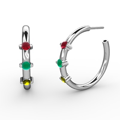 Peridot, kök zümrüt ve kök yakut 925 ayar gümüş küpe
