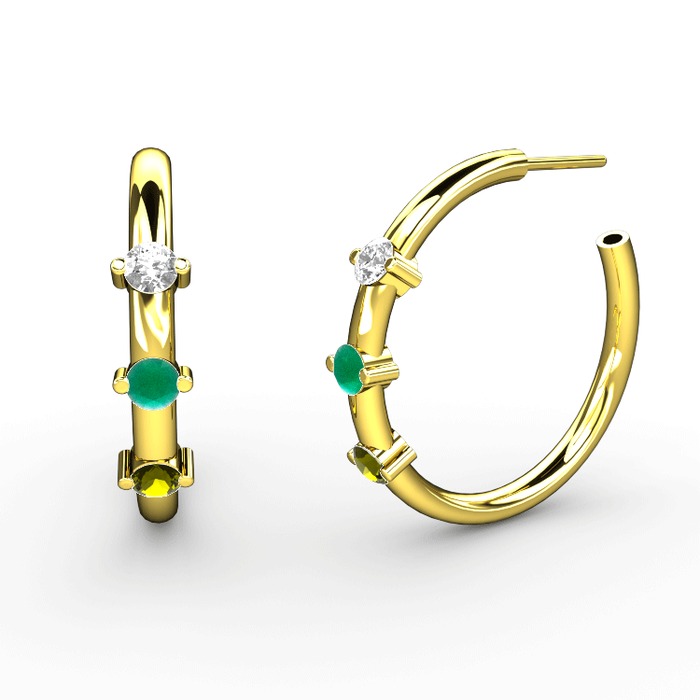 Peridot, kök zümrüt ve pırlanta 8 ayar altın küpe (0.22 karat)
