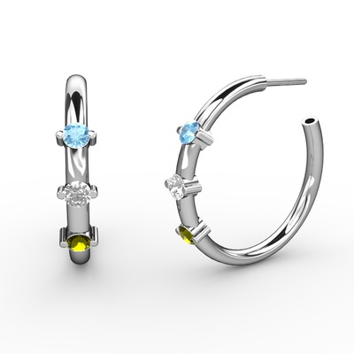 Peridot, pırlanta ve akuamarin 8 ayar beyaz altın küpe (0.22 karat)