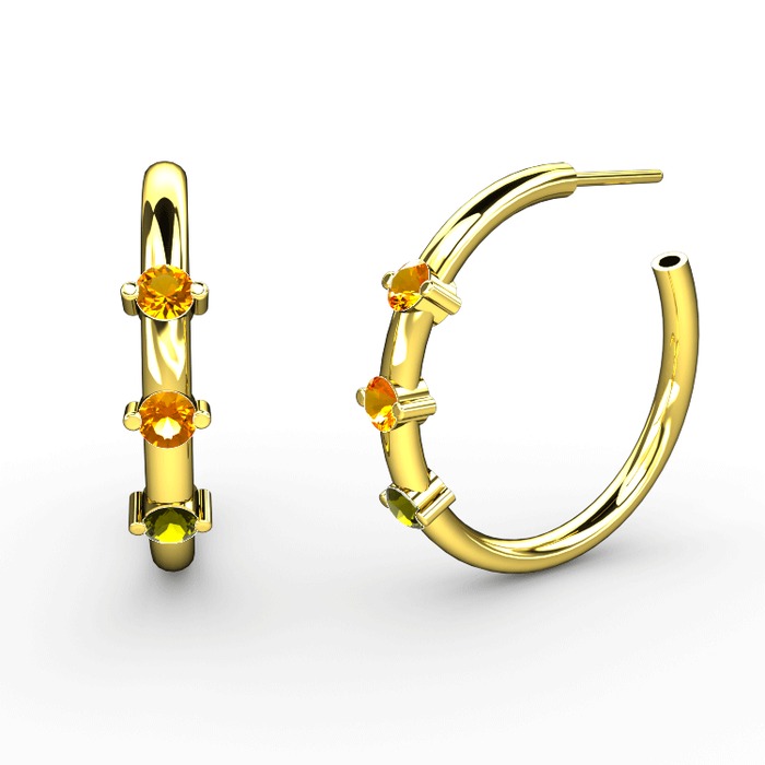 Peridot ve sitrin 925 ayar altın kaplama gümüş küpe